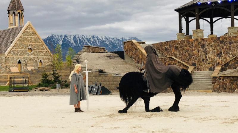 Boyé didn’t have to go far for the character actors needed for the dramatic scenes either. The excellent actors at Evermore wore their real costumes and adapted their characters to a Game Of Thrones dramatic storyline. Since horses are a big part in Game Of Thrones, horses were brought in for the scenes. ” When the trainer started doing tricks with horses, one of them, a beautiful black horse bowed down to actress portraying Princess Daenery and I just knew we had to capture that moment for the video!We’re planning on creating a sequel to it, and in the next version, I’ll be speaking Dothraki!” I f the last season of the HBO Series Game Of Thrones left you in a stupor, check out “Still Breathing: Harp Of The Thrones” and it might have you up again!