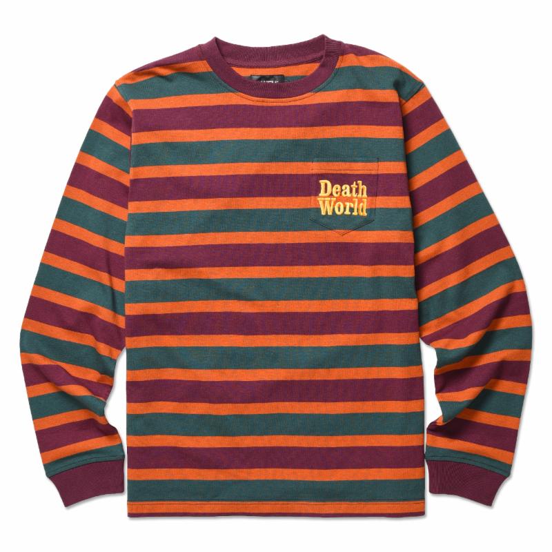 Today, Earl Sweatshirt’s brand DEATHWORLD is releasing its Spring ’19 Capsule collection. Consisting of new striped short and long-sleeved t-shirts, a warmup jacket and shorts, the new release is available now via the DEATHWORLD website.