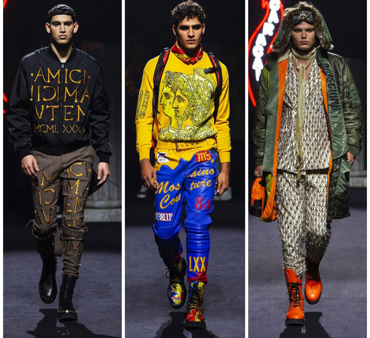 Iconic fashion house Moschino displayed its Fall 2019 Menswear Collection during the coveted Milan Fashion Week shows in Italy. The brand’s Fall 2019 Collection features a variety of colors, cuts and styles for men. Some of the looks are very relaxed and casual. Some individual pieces can be mixed and matched to get a high-end look or to get that city slicker casual look.