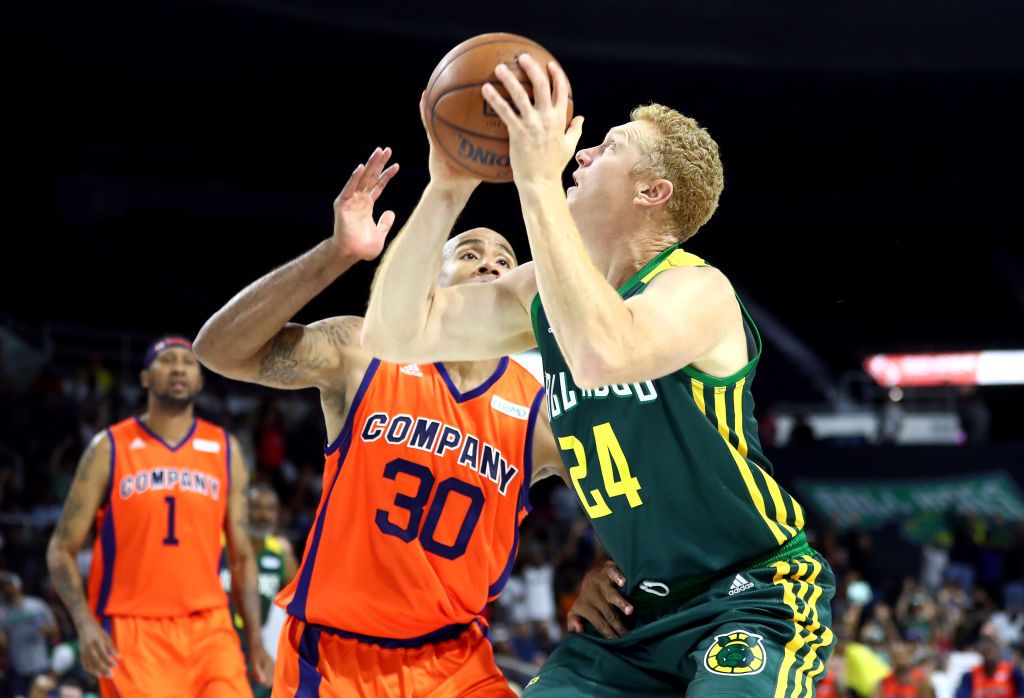 3’s Company refused to slow down in the second half, as Andre Emmett provided a spark off the bench and finished with 17 points. The Ball Hogs’ big man Will Mcdonald continued to be a force (18 pts, 4 reb) and crowd-favorite Brian Scalabrine ignited the crowd with a couple of buckets under the rim.