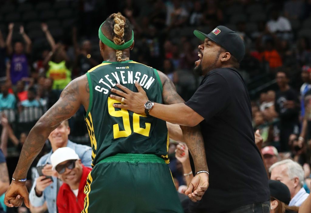 But the play of the game belonged to DeShawn Stevenson. After Silas nearly pulled off the game-winner, Stevenson grabbed the offensive board, rolled to the corner and quickly got off the biggest three-pointer of the season for Ball Hogs.